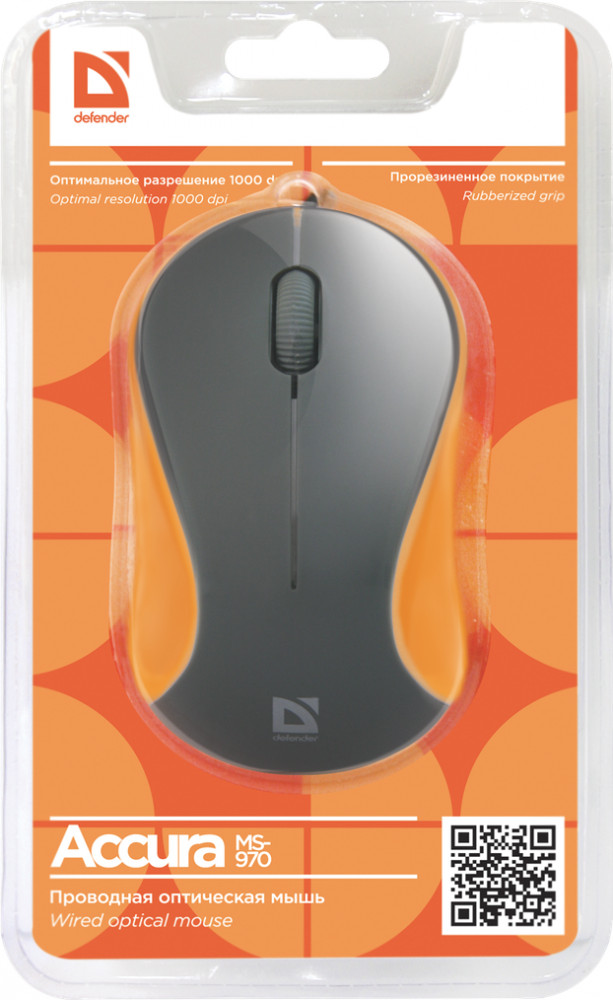 Мышь Defender Accura MS-970 оснащена тремя кнопками, одна из которых совмещена с колесом прокрутки. Интерфейс подключения — USB. Мышь можно использовать совместно с любыми компьютерами, в оснащение которых входит USB-порт.