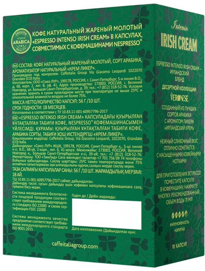 Veronese Кофе «Espresso Intenso Irish Cream»