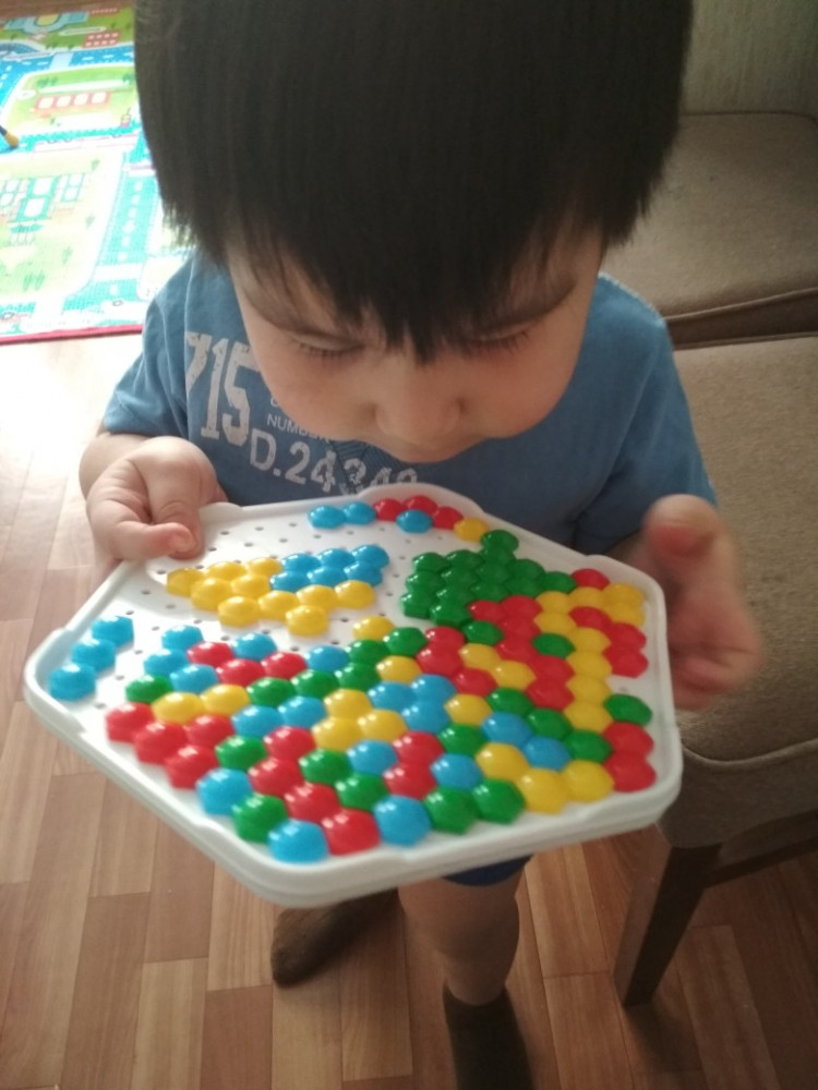 Мозаика отличная за свою цену, искала именно на пробу. Для первой мозаики то что нужно. Детки три и полтора года заинтересовались, собирают больше часа. Попозже куплю ему 200-300 элементов, а эту младшей отдадим.