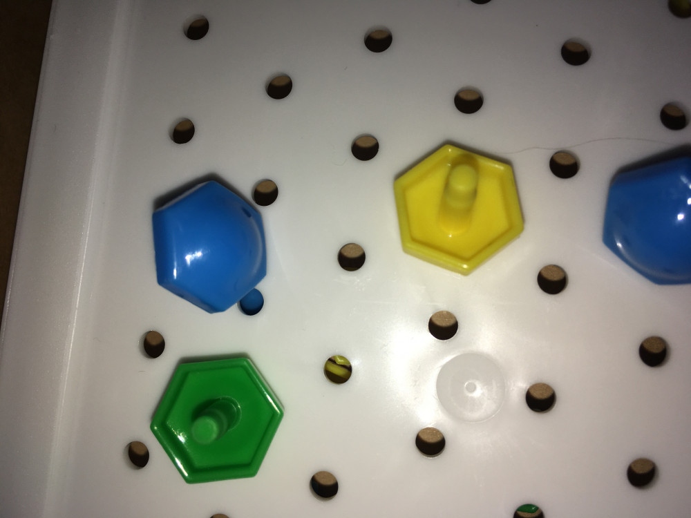 Мозаика мне очень понравилась! Доска-сетка выполнена из очень прочного пластика и это огромный плюс- если случайно наступишь она не треснет, не гнется в руках. Запаха нет, фишечки достаются очень легко. Дети довольны😊
