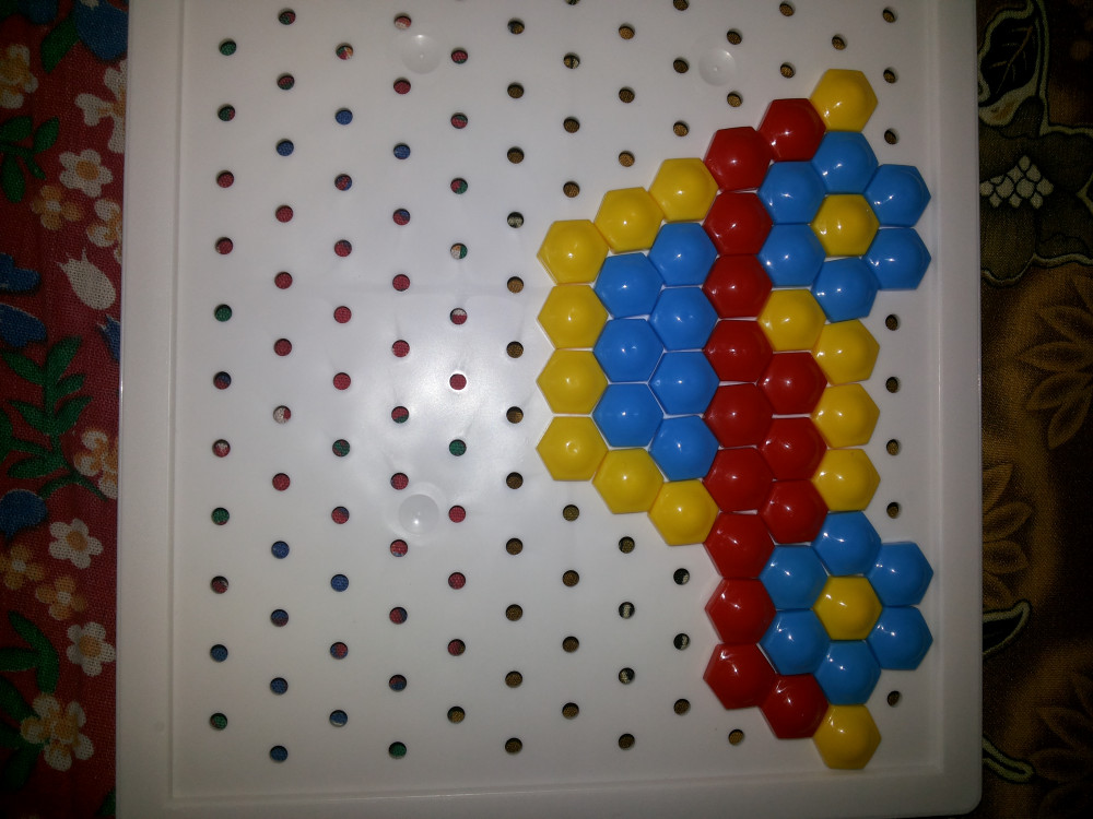 Хорошая мозаика: качественная, яркая, ребенку очень понравилась. Есть вкладыш с образцами рисунков, которые можно выложить.
