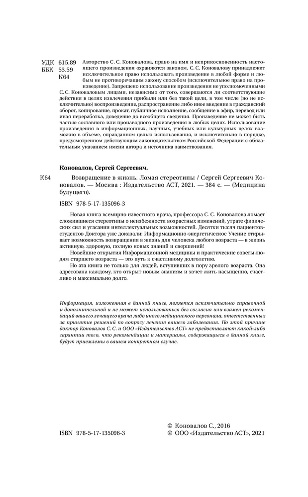 💳 Оплатить за товар можно при получении 🇰🇿 Есть бесплатная доставка по Казахстану 🎁 Копите бонусы с каждой покупки Серия: Медицина будущего Новая книга всемирно известного врача, профессора С. С. Коновалова ломает сложившиеся стереотипы о неизбежности возрастных изменений, утрате физических сил и угасании интеллектуальных возможностей. Десятки тысяч пациентов-студентов Доктора уже доказали: Информационно-энергетическое Учение открывает возможность возвращения в жизнь для человека любого возраста — в жизнь активную, здоровую, полную новых знаний и свершений! |
