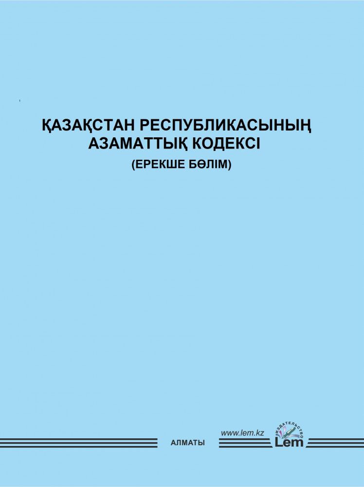 💳 Оплатить за товар можно при получении 🇰🇿 Есть бесплатная доставка по Казахстану от 1 дня 🎁 Копите бонусы с каждой покупки ҚР Азаматтық Кодексі (Ерекше бөлім) |