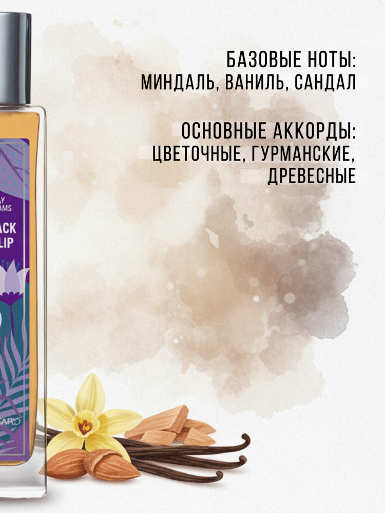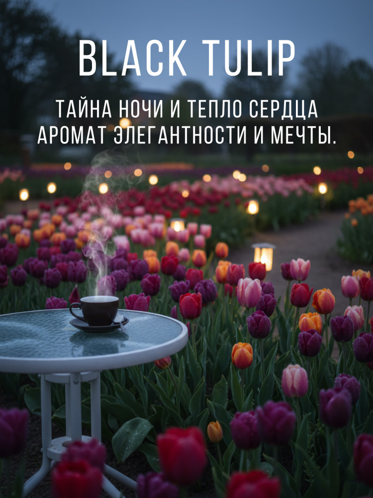 Я влюбилась в этот аромат. Взяла вместе с Crystal peony, для сравнения. Так вот Black Tulip гораздо мощнее, сочнее, ярче звучит. Когда раскрывается кофе с миндалем, голову сносит напрочь. Аромат для прохладных вечеров, так и просится выгулять его на свидании)