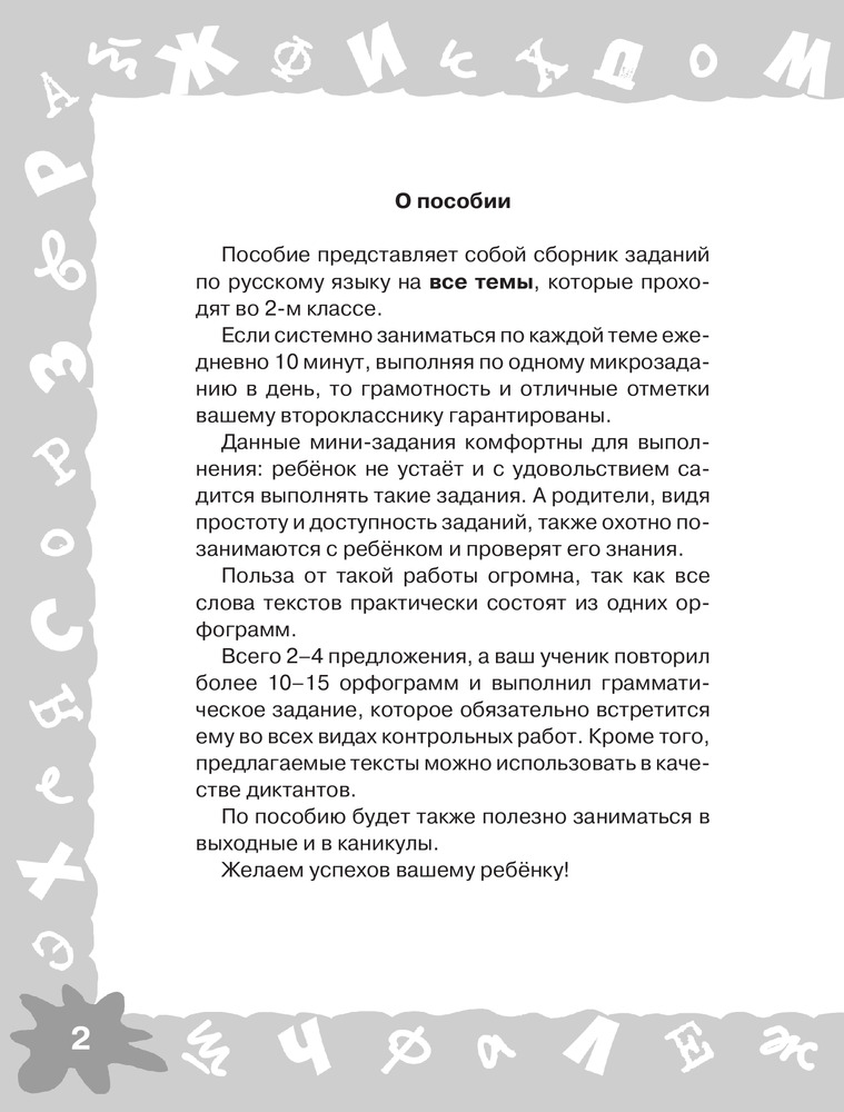 Если системно заниматься с ребёнком по каждой теме ежедневно 10 минут, выполняя по одному микро-заданию в день, то грамотность и отличные отметки вашему второкласснику гарантированы.