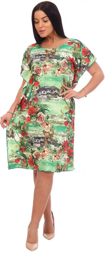 Взяла платье со скидкой, потому никакого разочарования. Спасибо тем, кто написал, что платье маломерит. У меня рост 162, 52 размер, взяла на два размера больше и платье оказалось впору, длина чуть ниже колен. Фото прилагаю. Из-за того, что платье абсолютная синтетика, навряд ли подойдёт для жаркого лета. Но думаю на пляж можно, быстро будет сохнуть, если намокнет. Я взяла для домашнего пользования. Платье абсолютно не мнётся, хоть встань, хоть ляг, хоть спи в нём 😂