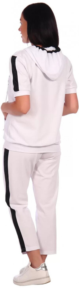 Костюм качественный, но мне на мой 46 оказался немного мал. Верх сел хорошо, а штанишки немного обтягивали. Возврат, к сожалению. Ткань тонкая. В целом костюм красивый. По бокам блестящие вставки не дешевят костюм, а делают нарядным.