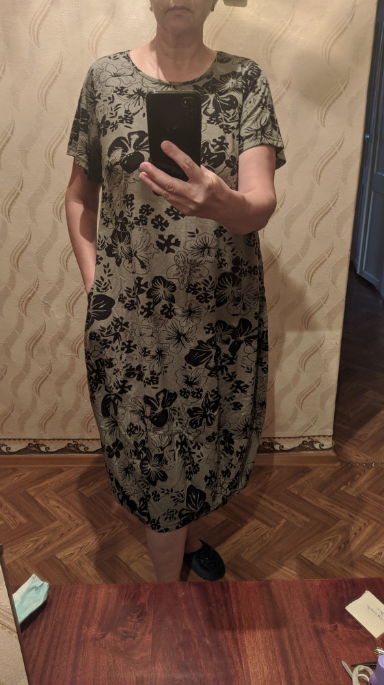 Платье понравилось. Очень удобное, лёгкое. Рост 178,длина подошла хорошо. Размер 56,свободно и это плюс. Спасибо Flip!