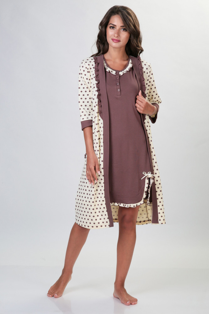Красивый комплект. Размер, как и рассчитывала, подошел. Пошив и ткань качественные. Смотрится как на модели сайта, плюс то, что не видно на фото - это красиво оформленные воланчиками из ткани в цвет сорочки, края боковых карманов, что придает дополнительный шарм комплекту. Покупкой довольна и рекомендую.