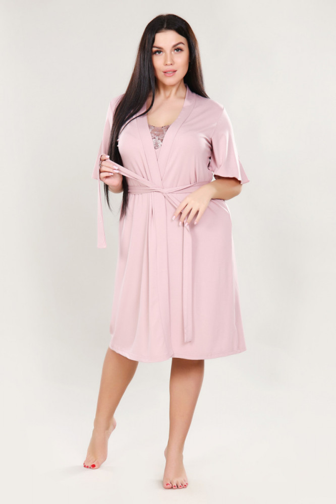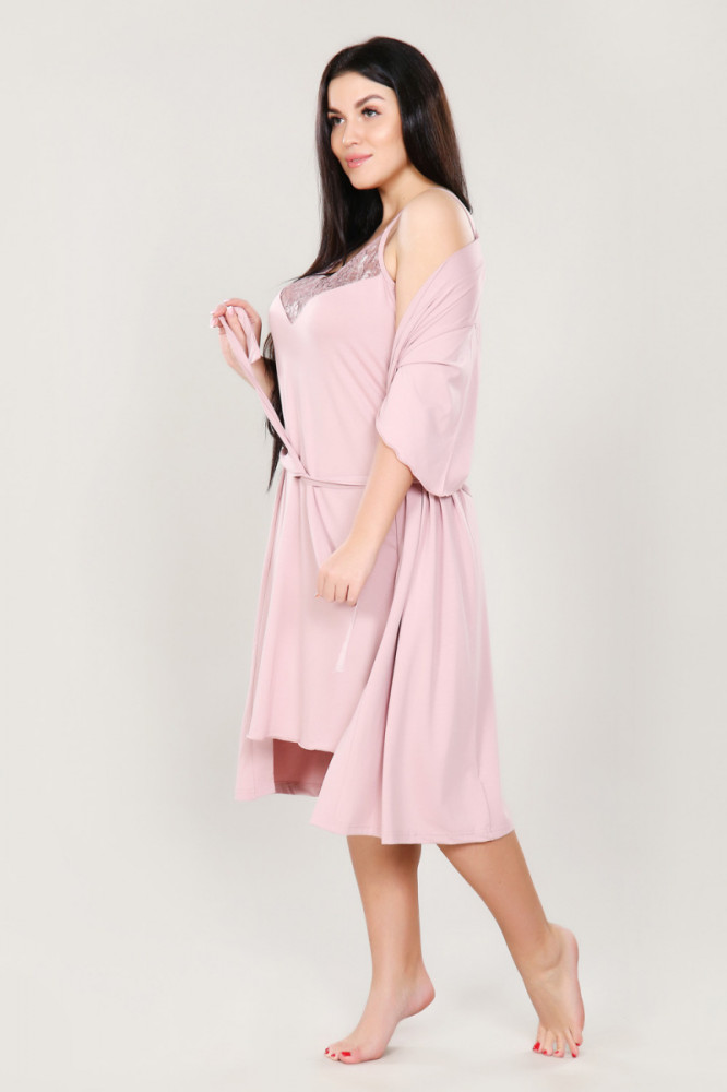 Комплект очень понравился, сразу стала пользоваться, сорочка для наших алматинских летних ночей очень подошла, в ней не жарко и халатик на утро очень удобно, пришила на уровне талии 2 пуговки и обхожусь без пояса (ну это уже возрастное - всё что стягивает мешает)
