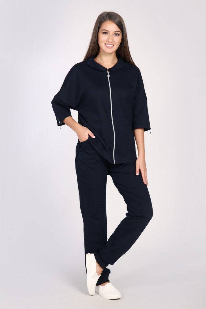 Ткань приятная. Пошив качественный. Брала 48р. Брюки удобные свободные на рост 170 по длине идеально. Верх я вообще не поняла. Замок хлипкий. Модель на меня не села На очень широкие плечи и узкие бедра. На мне пузырем. Возврат.