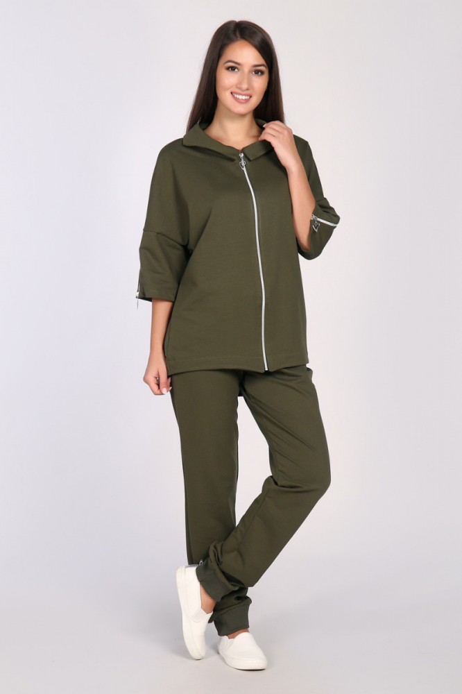 Ткань приятная. Пошив качественный. Брала 48р. Брюки удобные свободные на рост 170 по длине идеально. Верх я вообще не поняла. Замок хлипкий. Модель на меня не села На очень широкие плечи и узкие бедра. На мне пузырем. Возврат.