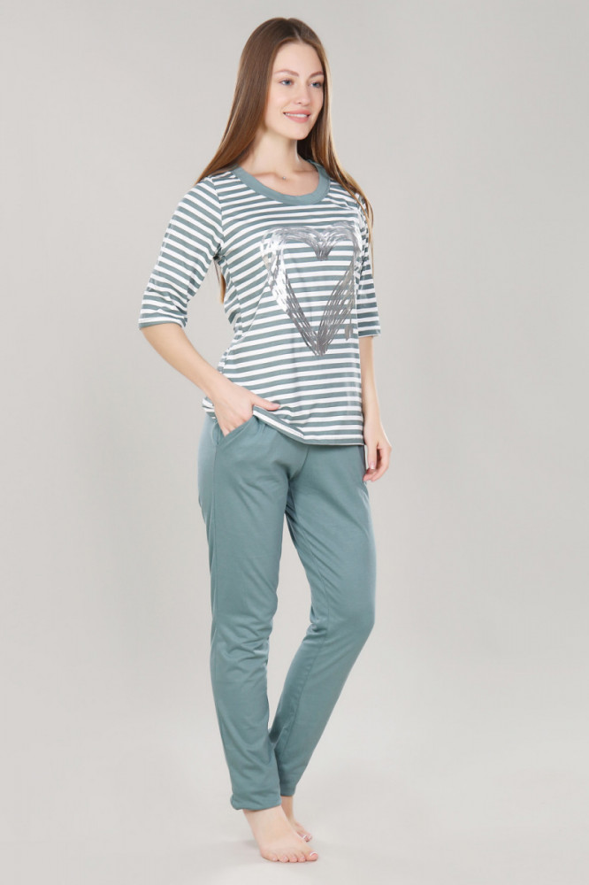 Пижама отличная.Заказывала такую в зеленом цвете но отдала дочке, так как маломерит. заказала вторую больше на 2 размера села хорошо