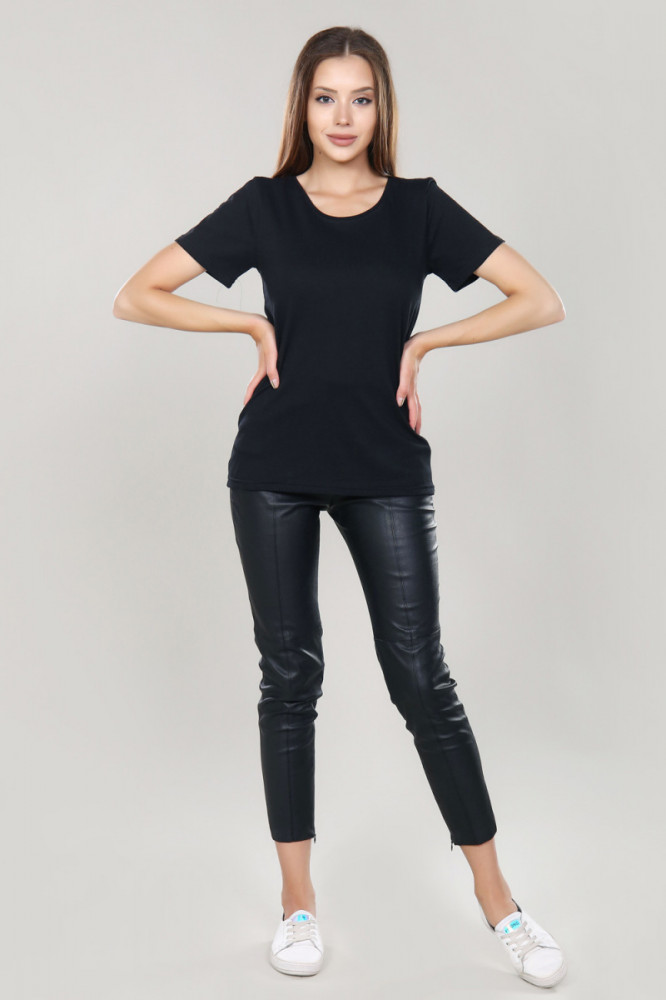 Приятный тёмно-синий цвет, ткань замечательная, очень удобная футболка.