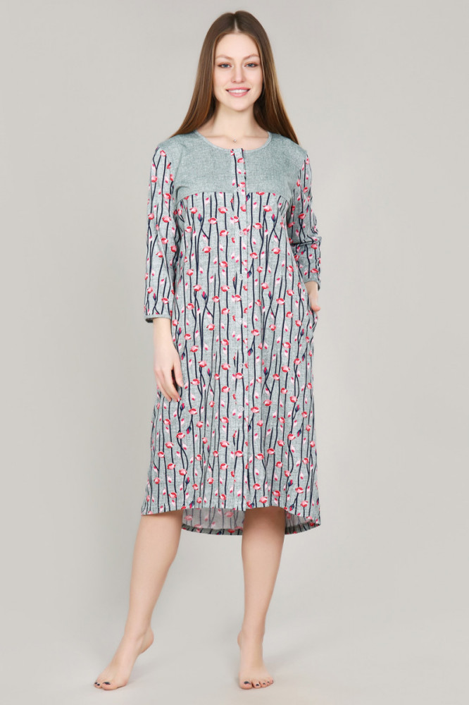 Халатик классный 👍. У меня размер 50 ,взяла 52 с учётом того, что может после стирки подсесть. Халат оказался в самый раз. Если бы взяла 50 ,то тесноват в плечах был бы. На рост 164 ниже колена. Спинка по длине ниже переда не на много - в самый раз. Тоненький, легкий , расцветка не вычурная. В боковых швах кармашки. Если у кого полные руки, то рукава будут тесноваты. Вообщем я в восторге. Ещё не стирала, что как себя поведёт ничего сказать не могу.