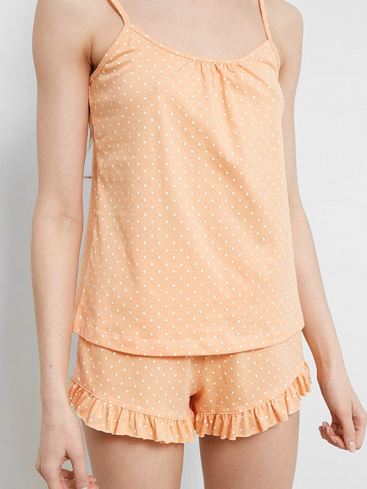 Пижама отличная, трикотаж мягкий, приятный к телу. Немного большемерит.,размер -М на 48., советую к покупке, хотела заказать ещё на подарок, но увы товар отсутствует.