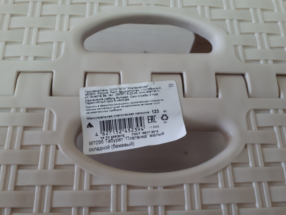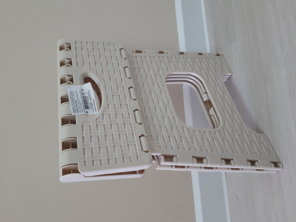 До покупки не могла найти информацию о его прочности. Ну что ж - 65 кило смело может стоять на нем 🤣🤣, я использую его вместо маленькой стремянки 👍