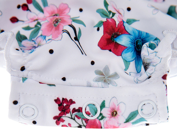 Очень хороший купальник,брали на размер 80 ,размер в размер,очень хорошее качество,яркий,сочный,снизу кнопки.