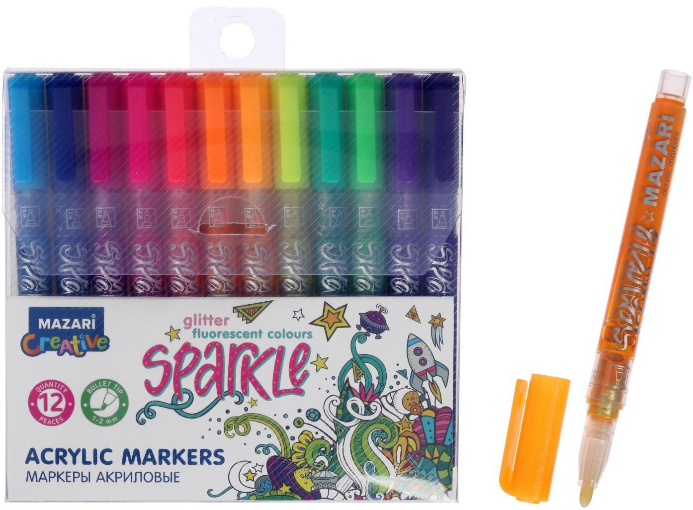 Mazari Sparkle — цветные маркеры с насыщенными чернилами с блестками для скетчинга, рисования и декорирования различных поверхностей.