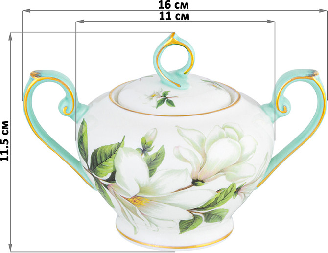 Elan Gallery Сахарница «Магнолия»В данный момент этот товар отсутствует в продаже. Возможно, у нас найдется аналогичный или похожий товар здесь. Серия: Магнолия Сахарница серии «Магнолия» поможет организовать множество приятных чаепитий. Сахарница выполнена из высококачественного фарфора, украшена нежными изображениями магнолии и обрамлена золотым окаймлением. Подойдет для хранения и красивой подачи сахара, меда, варенья и самых разных продуктов. Сахарница имеет изящную форму и ручки по бокам. Не подходит для использования в микроволновой печи и посудомоечной машине. Поставляется в подарочной упаковке. Сахарница из серии посуды «Магнолия» сможет стать настоящим украшением кухни или приятным подарком для ваших родных и близких! |