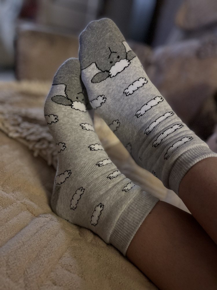 Взяла светло-серый меланж, такие овечки милые. Хорошо тянутся, внутри махровые, очень довольна покупкой.