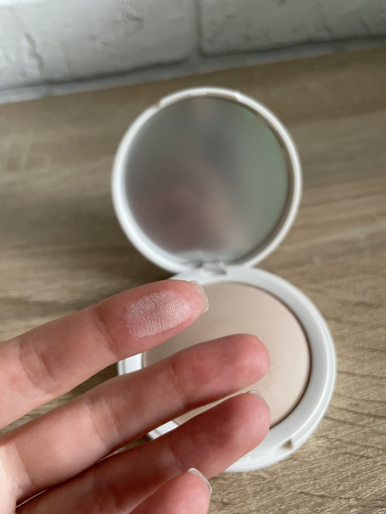 Классная пудра! Долго сомневалась на счет оттенка, так как, на фото она выглядит как хайлайтер, было опасение, что лицо будет блестеть, но нет! Пудра дает красивое свечение (без блесток) и оттенка пудры как такового на коже не видно.