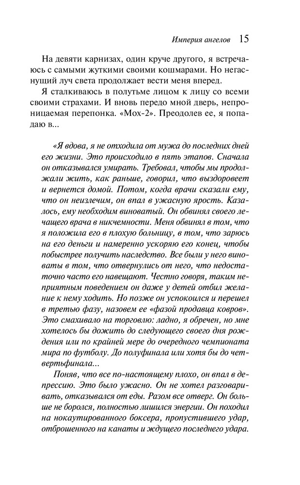 После прочтения Танатонавтов была надежда, что Империя ангелов будет поинтереснее, но книга так себе. Идея книги интересная, но исполнение ужасное. Абсолютно картонные персонажи, странная одержимость громкими именами из прошлого, все это в перемешку с нелепыми ситуациями. Ощущение что это все написал школьник. Книга читается легко и быстро, временами попадаются интересные мысли, но по мне книга довольно скучная, можно было остановиться на Танатонавтах, осталось бы больше приятных впечатлений.