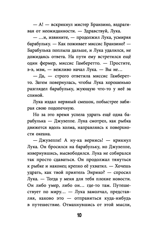 ЛукаВ данный момент этот товар отсутствует в продаже. Возможно, у нас найдется аналогичный или похожий товар здесь. Серия: Детск. Уолт Дисней. Нерасcказанные истории Луке двенадцать лет, он весёлый и любопытный... морской монстрик! Но, как и любой самый обыкновенный мальчишка, он хочет завести друзей и узнать мир. Правда, сделать это можно только на суше, а ему туда ходить запрещено, хоть он и умеет превращаться в человека... Всё меняется, когда Лука встречает Альберто — другого морского монстрика, который — вот это да! — живёт на острове. И очень скоро мальчишки отправятся на большую землю — в городок Портороссо — чтобы исполнить мечту: отправиться исследовать мир на настоящей «Веспе». Есть только маленькая проблемка — всего одна капля воды, и морских чудищ разоблачат, и тогда им не поздоровится! А воды в прибрежном городке хоть отбавляй... |