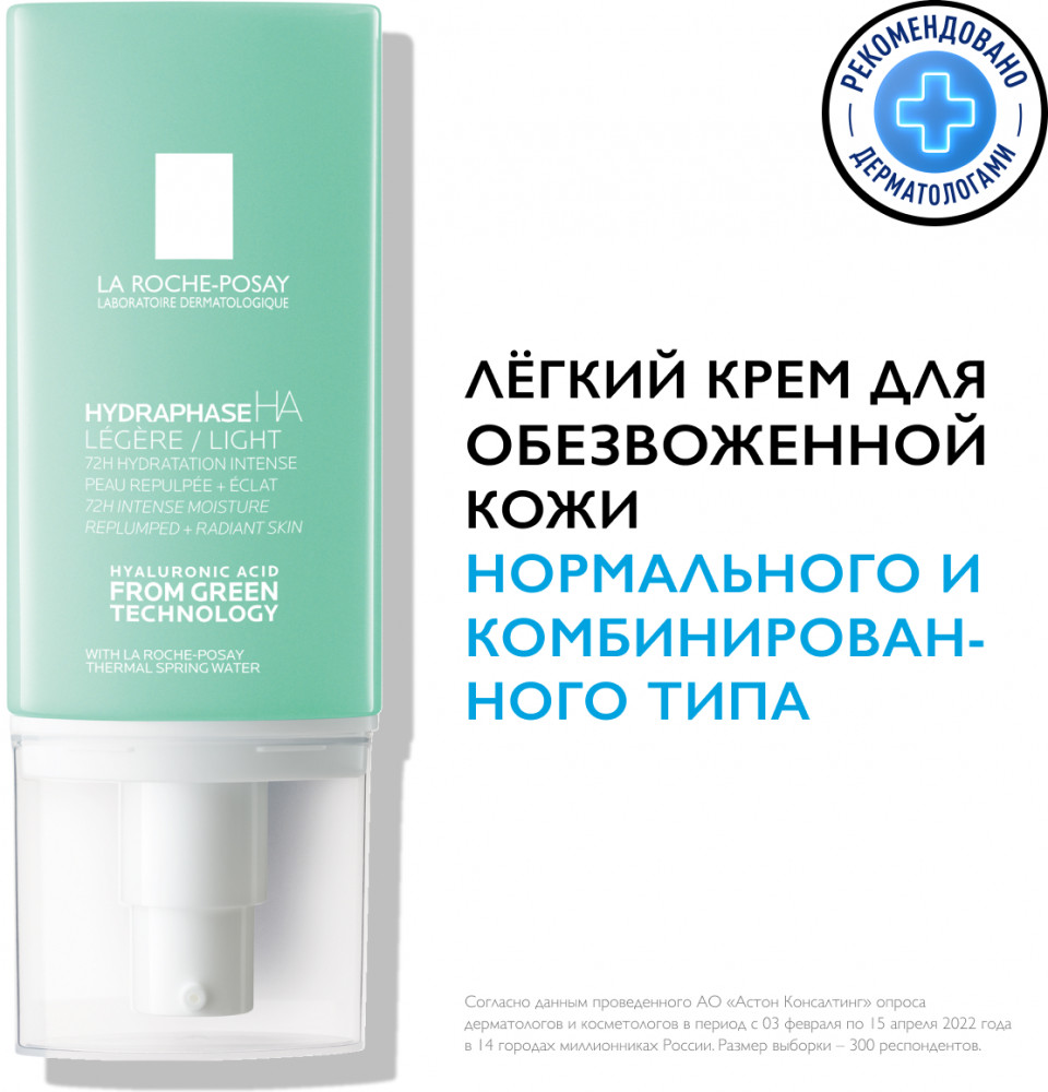 La Roche-Posay HYDRAPHASE HA Легкий крем для интенсивного увлажнения+503 легкая текстура быстро впитывается не липкий освежает