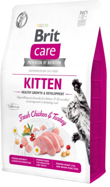 Brit Корм для котят, беременных и кормящих кошек со свежим мясом курицы и индейки «GF Kitten Healthy Growth & Development»