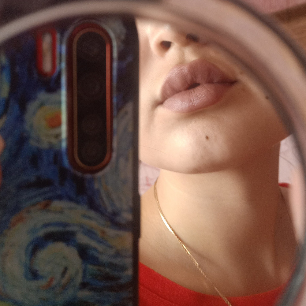 приятная текстура, не подчеркивает шелушения на губах, немного сушит - это ожидаемо, всё-таки матовая. помадой довольна.