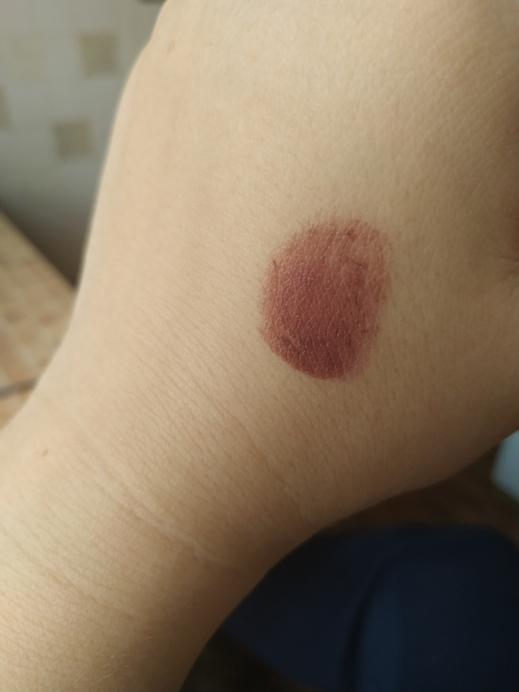 текстура приятная, цвет очень красивый, шелушения и трещинки не подчеркивает, очень довольна.
