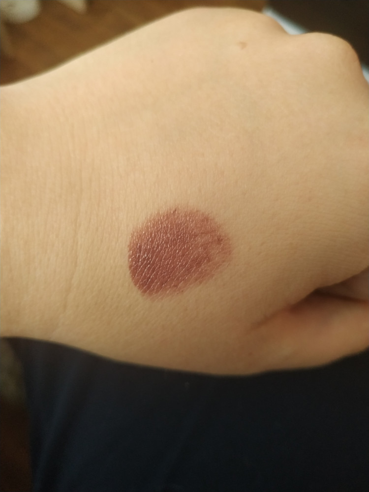 Тон 06. Ошиблась с цветом. Помада — сливовая, не то, что я хотела, думала это будет более тёплый оттенок, терракотово-коричневый. В стике помада выглядит точно как на фото-образце, но при нанесении оттенок меняется. Цвет насыщенный сливовый. Качество помады — хорошее.