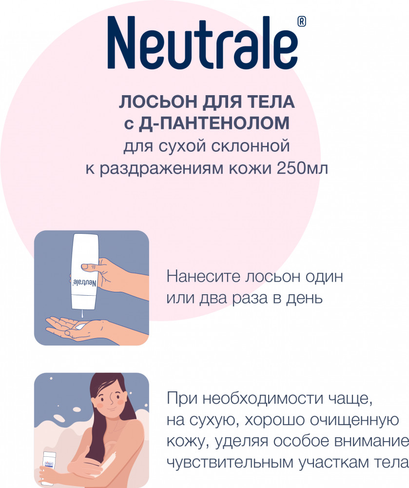 Neutrale Лосьон для тела с Д-пантеноломВ данный момент этот товар отсутствует в продаже. Возможно, у нас найдется аналогичный или похожий товар здесь. Лосьон с Д-пантенолом и нейтральной формулой предназначен для бережного ухода за очень сухой, атопичной, склонной к раздражениям кожей. Разработан специально для людей с высокой чувствительностью кожи, предрасположенных к аллергическим реакциям, страдающих от повышенной сухости и раздражений. |