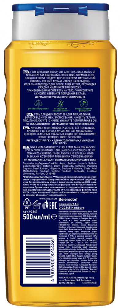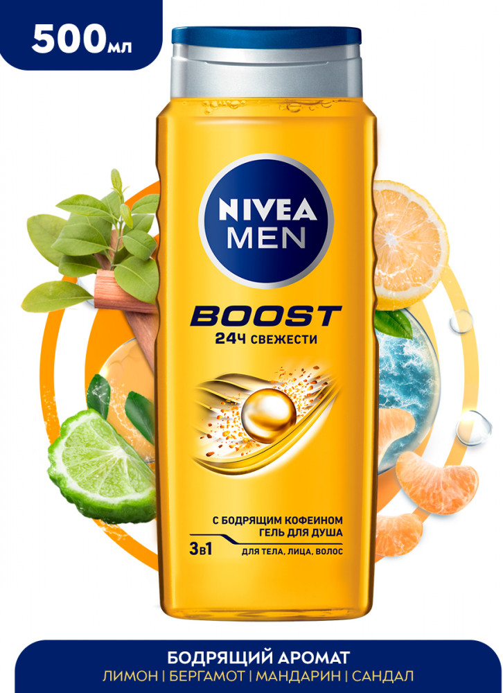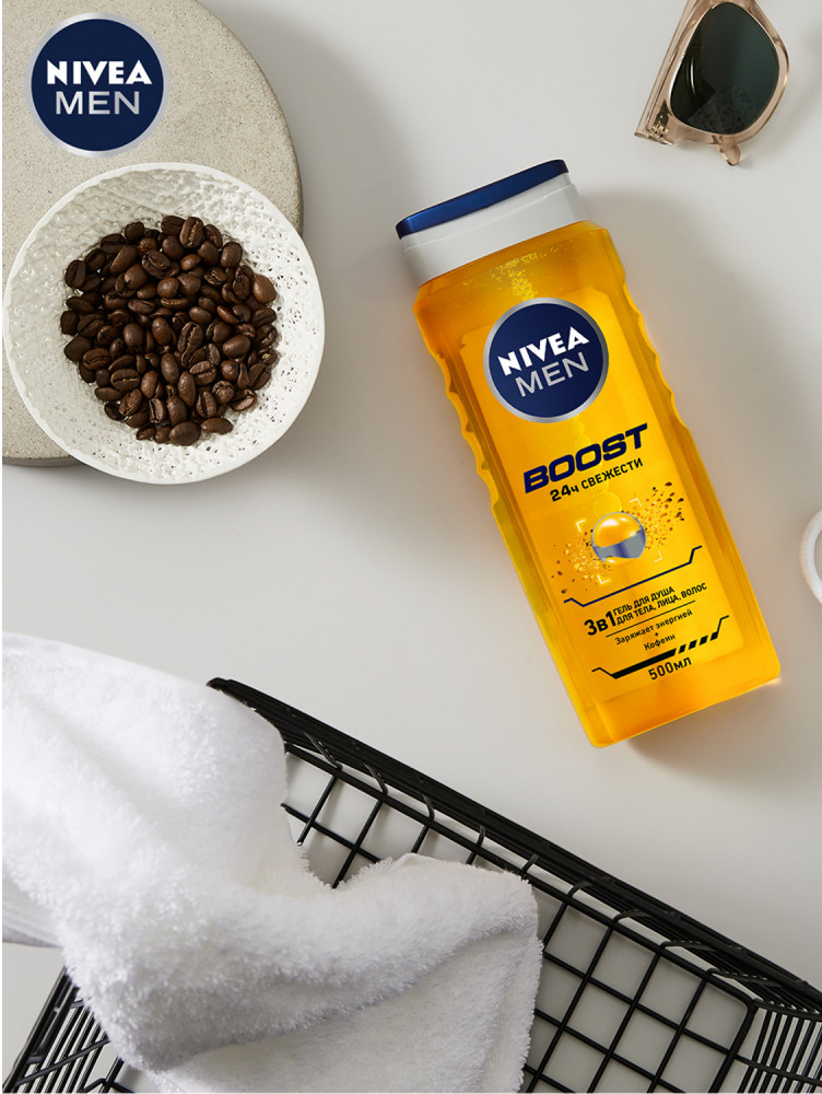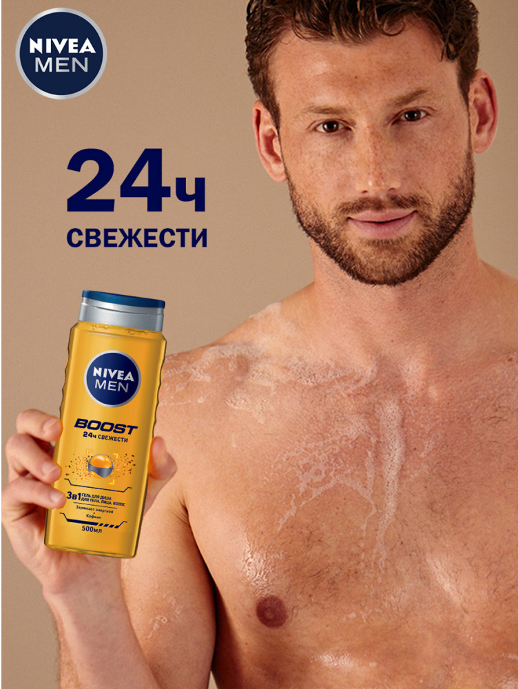 NIVEA Гель для душа «Boost» 3 в 1 для тела, лица и волос, 500 мл+88 приятный аромат большой объём для мужчин