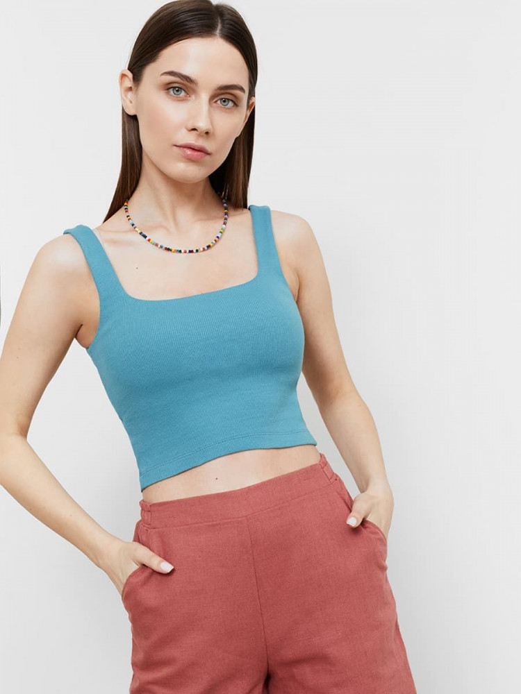 Топ укорочённый, есть подклад, можно носить без белья, цена/качество соответствует и размер тоже согласно размерной сетки