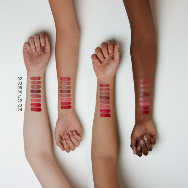 Помада хорошая. Взяла 03 тон, ношу повседневно. Оттенок немного уходит от натурального цвета губ в коричнево-оранжевый. На осень зиму самое то, не сушит губы, наоборот увлажняет.