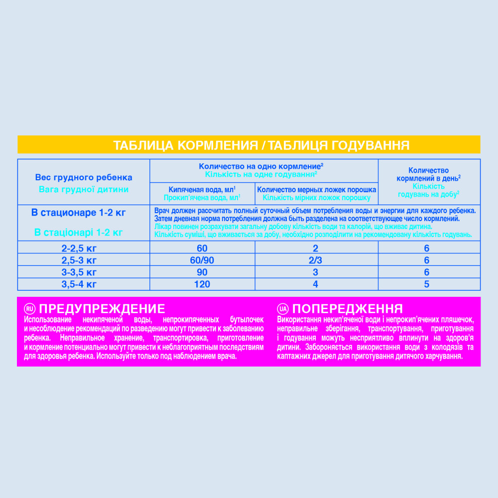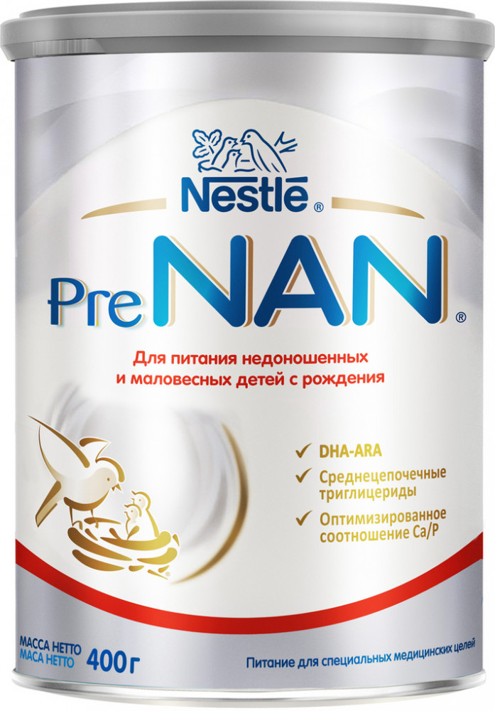 NAN Смесь молочная для недоношенных и маловесных детей PreNANВ данный момент этот товар отсутствует в продаже. Возможно, у нас найдется аналогичный или похожий товар здесь. PreNAN — сухая молочная смесь для питания недоношенных и маловесных детей. Она обеспечит повышенные потребности недоношенного ребенка в питательных веществах, необходимых для быстрого роста и развития. Сухая молочная смесь имеет 2 возможности разведения: на 70 и 80 ккал на 100 мл. |