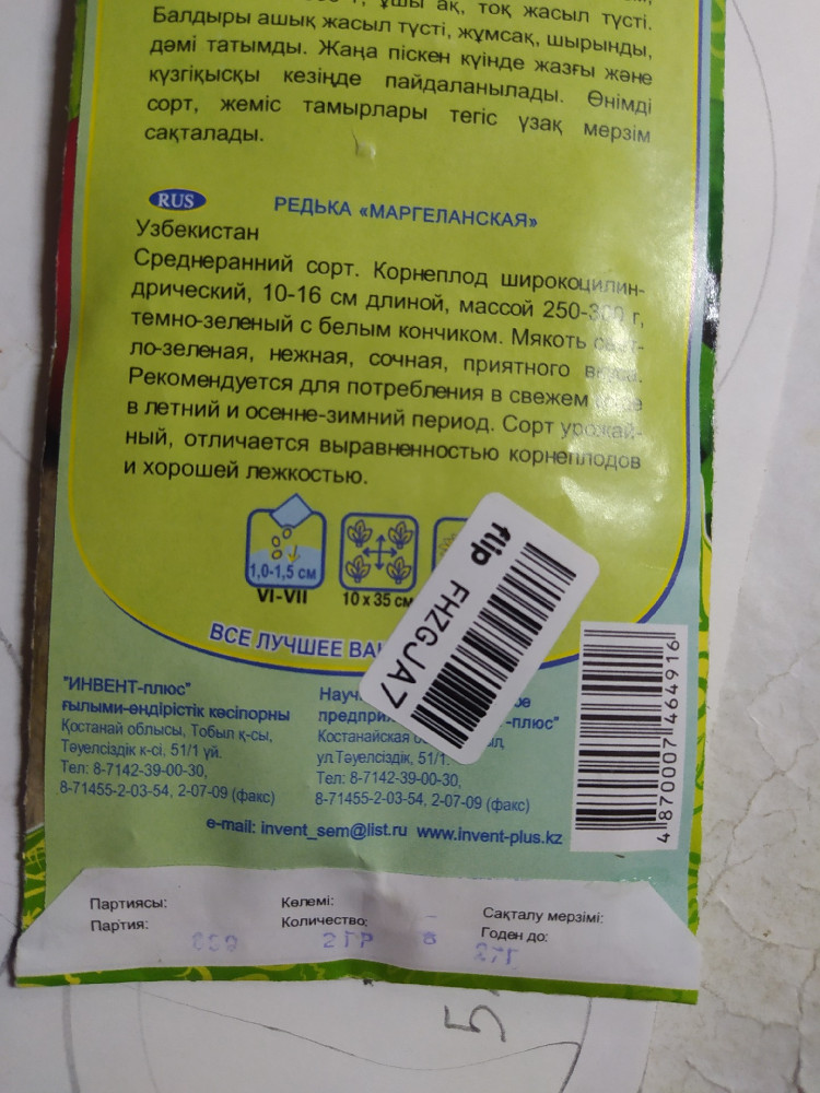 Инвент+ Редька «Маргеланская»+3 срок годности качество