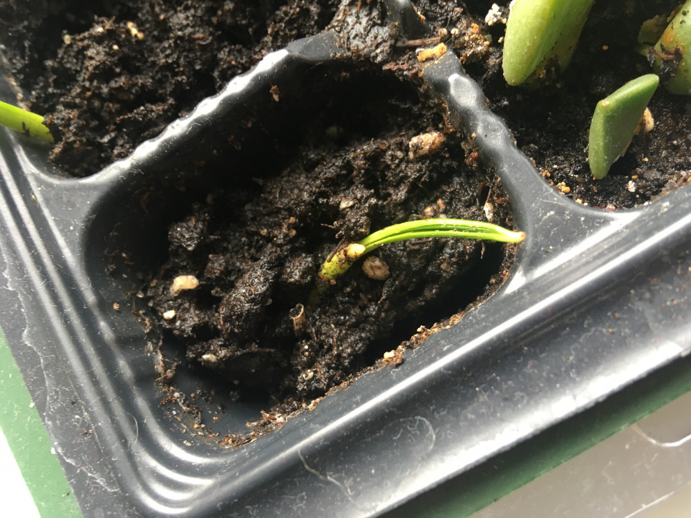 из 3х семечек, вылезло 1, пока такой вид, ростим дальше))) семечки долго сидели в грунте, примерно месяц.