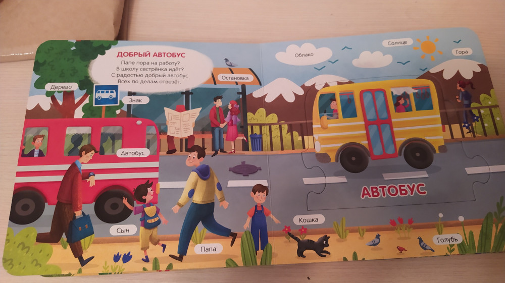 Рекомендую!!! В полном восторге от книжки! Планирую теперь купить другие из этой серии. Страницы очень плотные, толстые. Изображения яркие, стихотворения отличные. можно подолгу рассматривать. Пазлы вобще чудесные ❤️ очень большой плюс, что когда вы достаете пазл со страницы, под пазлом не пустота, а дублированная картинка. Ставьте 👍если отзыв был полезен