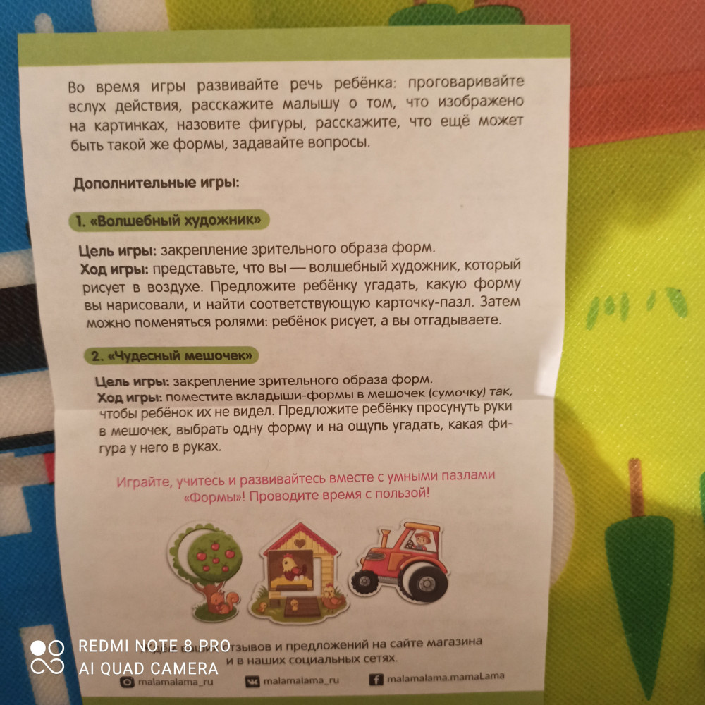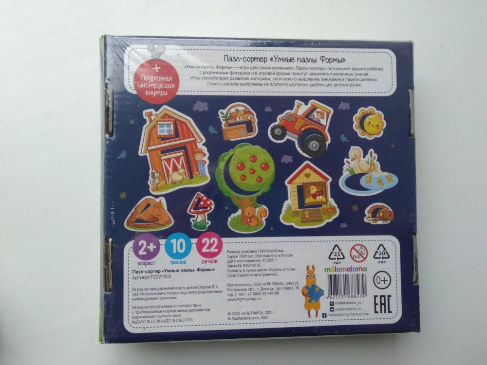 💳 Оплатить за товар можно при получении 🇰🇿 Есть бесплатная доставка по Казахстану от 1 дня 🎁 Копите бонусы с каждой покупки «Умные пазлы. Формы» — это пазлы-сортеры для малышей, которые познакомят ребёнка с различными фигурами и в игровой форме помогут закрепить полученные знания. Игра способствует развитию моторики, логического мышления, внимания и памяти. Пазлы-сортеры выполнены из плотного картона, крупные детали не выскальзывают из детских ручек и легко вставляются в рамки-вкладыши. Порадуйте своего ребёнка пазлами-сортерами «Умные пазлы. Формы»! |