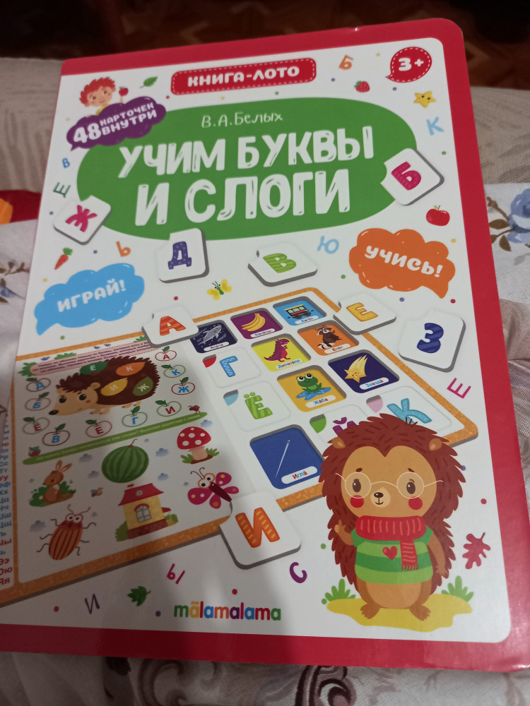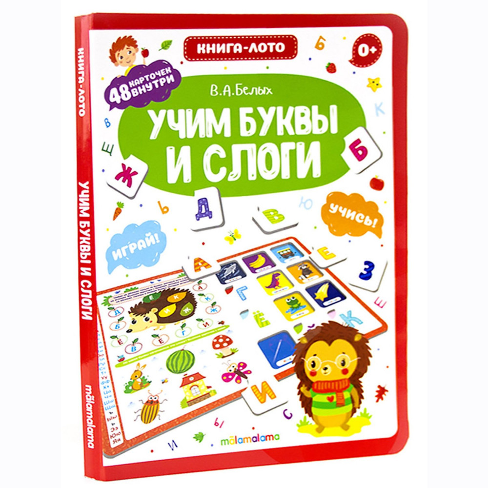 Книга-лото. Учим буквы и слогиВ данный момент этот товар отсутствует в продаже. Возможно, у нас найдется аналогичный или похожий товар здесь. Серия: Книга-лото С книгой-лото «Учим буквы и слоги» ребенок в занимательной форме познакомится буквами русского алфавита и научится составлять из них слоги и слова. На 8-ми страницах малыш найдет 48 карточек, которые помогут выполнить множество увлекательных и развивающих заданий, созданных по методике Виктории Белых — педагога-психолога с 25-летним стажем работы с детьми |
