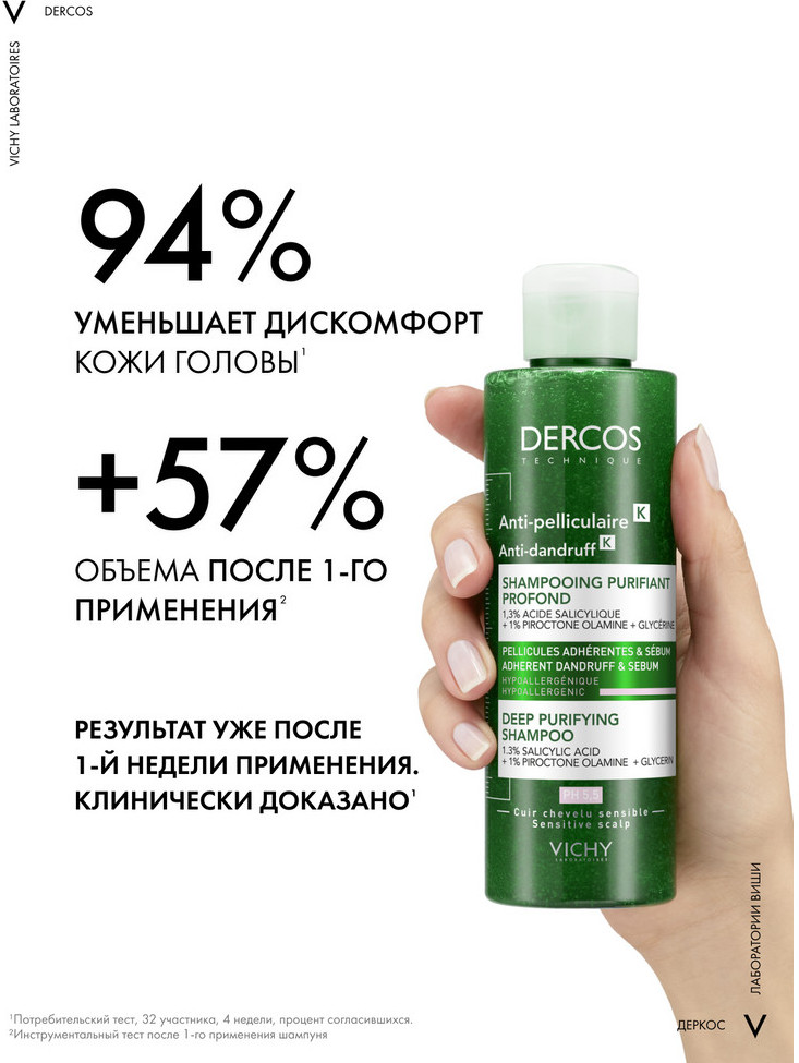 Vichy Dercos Глубоко очищающий шампунь-пилинг против перхоти-25% +90 пилинг гипоаллергенно экономичный комплексное применение
