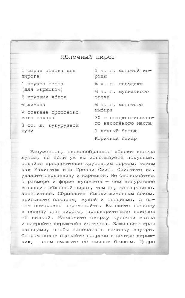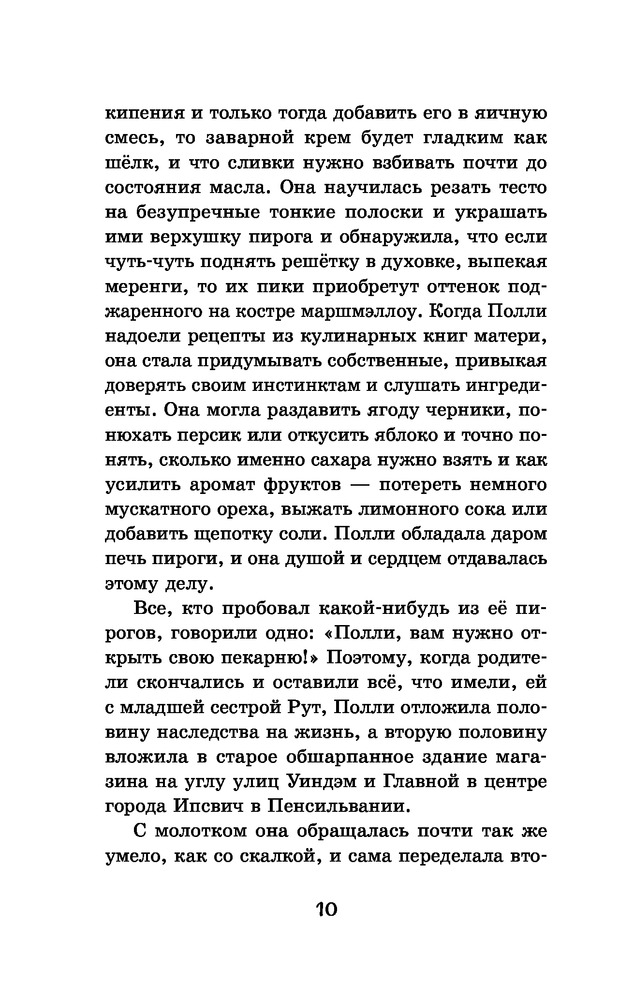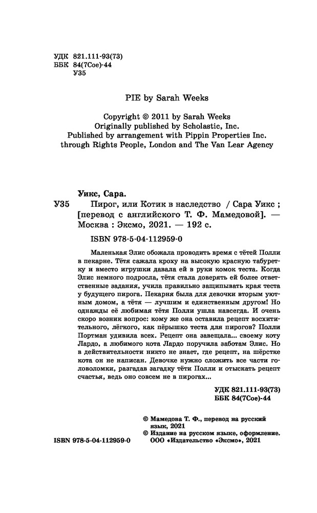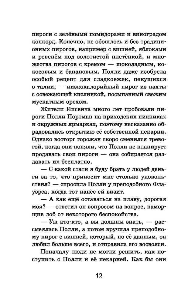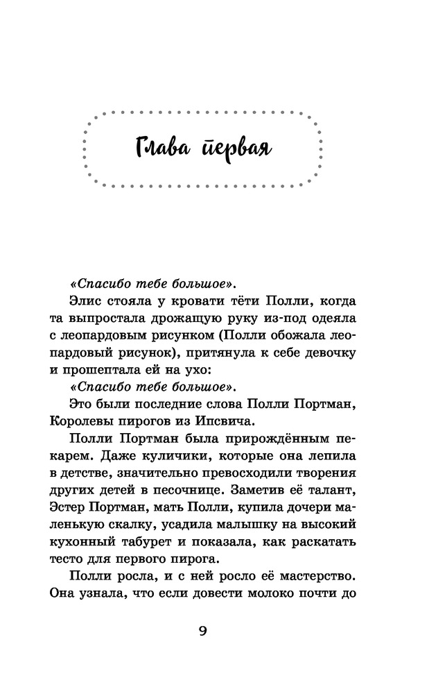 Пирог, или котик в наследствоВ данный момент этот товар отсутствует в продаже. Возможно, у нас найдется аналогичный или похожий товар здесь. Серия: Счастье не в пирогах. Проза для подростков Маленькая Элис обожала проводить время с тётей Полли в пекарне. Тётя сажала кроху на высокую красную табуретку и вместо игрушки давала ей в руки комок теста. Когда Элис немного подросла, тётя стала доверять ей более ответственные задания, учила правильно защипывать края теста у будущего пирога. Пекарня была для девочки вторым уютным домом, а тётя — лучшим и единственным другом! Но однажды её любимая тётя Полли ушла навсегда. И очень скоро возник вопрос: кому же она оставила рецепт восхитительного, лёгкого, как пёрышко теста для пирогов? Полли Портман удивила всех. Рецепт она завещала... своему коту Лардо, а любимого кота Лардо поручила заботам Элис. Но в действительности никто не знает, где рецепт, на шёрстке кота он не написан. Девочке нужно сложить все части головоломки, разгадав загадку тёти Полли и отыскать рецепт счастья, ведь оно совсем не в пирогах... |