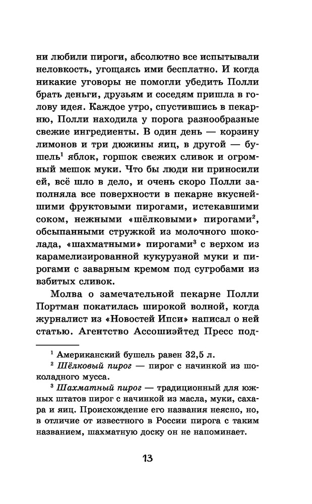 Чудесная книга! Белая бумага. На обложке глянцевый текст на матовом фоне. Крупный шрифт, моему 7-летнему ребёнку очень удобно читать! В книге еще и несколько рецептов пирогов :))) И сюжет хороший. Прекрасное дополнение в детскую библиотеку! Взяли обе книги из серии.