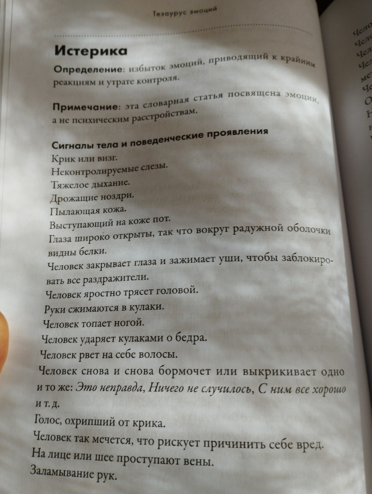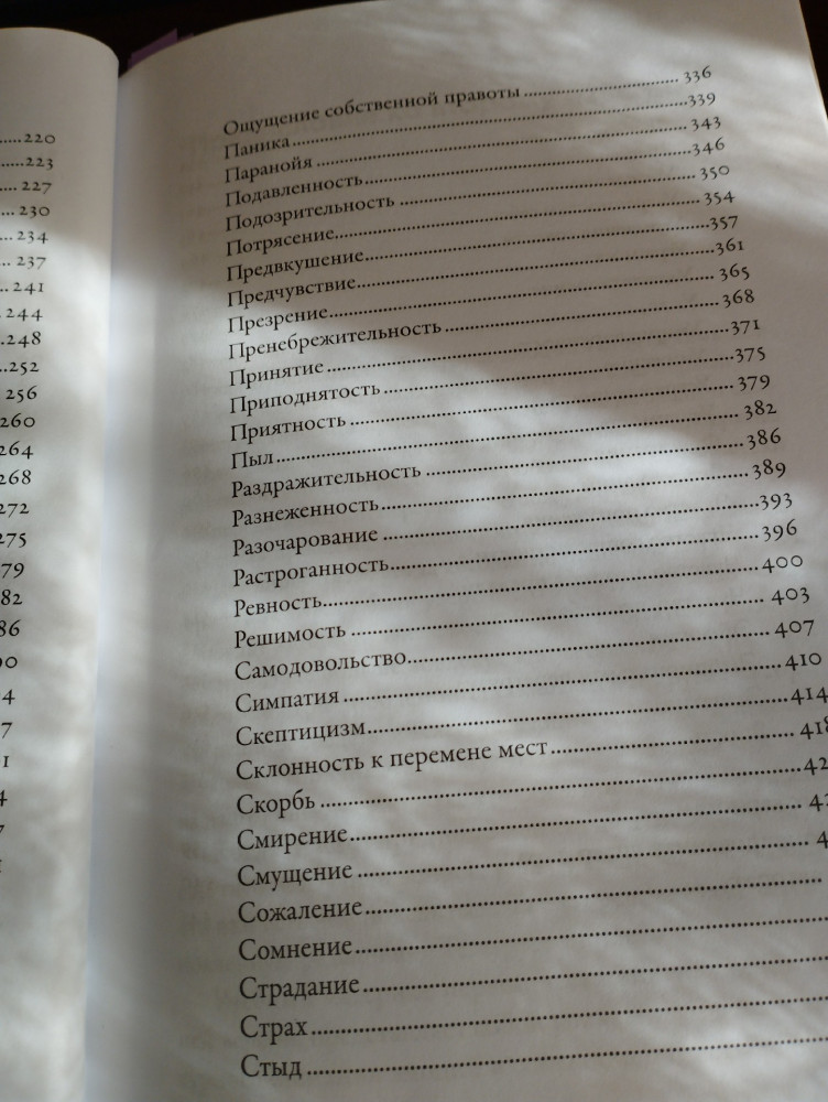 настольная книга-справочник для сценариста, художника, писателя, для всех, кому важно делать персонажей выразительнее и убедительнее. с самой книгой все ок, твердый переплет, хорошая бумага, оглавление подробное, сразу перехожу к интересующему в данный момент вопросу и там уже и описание и удобная навигация, где какую эмоцию ещё можно раскопать и изучить.