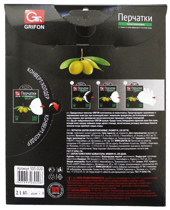 Grifon Перчатки одноразовыеВ данный момент этот товар отсутствует в продаже. Возможно, у нас найдется аналогичный или похожий товар здесь. Перчатки одноразовые изготовлены из прочного полиэтилена, благодаря чему надежно защищают руки от воздействия грязи, влаги, масел, жиров, а так же от бытовой химии. Широко используются в кулинарной промышленности, в домашнем хозяйстве и и для ремонтных, малярных и парикмахерских работ. |