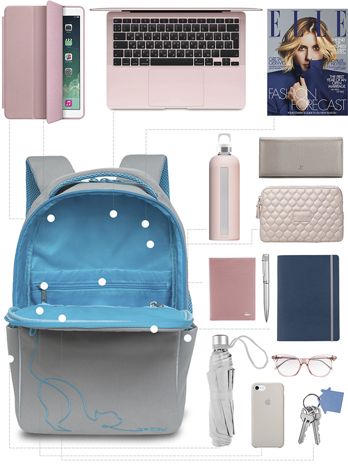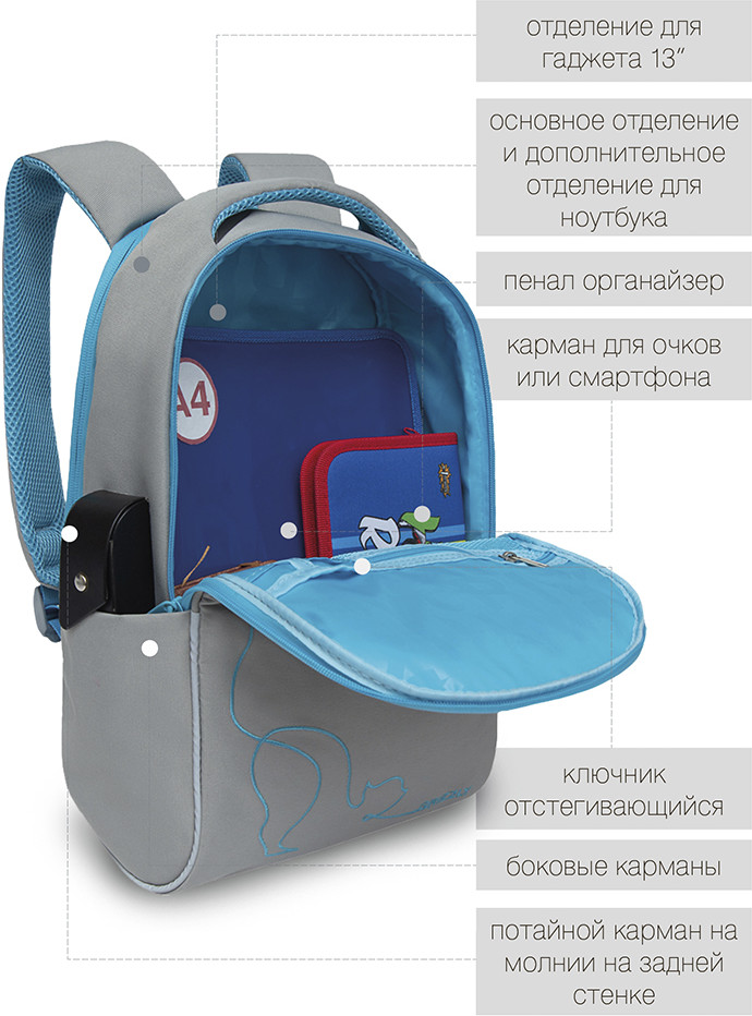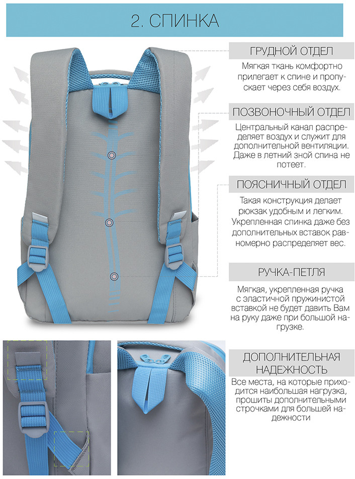 Хорошее качество, 2 больших отдела, и 2 средних отдела спереди и сзади. Компактное расположение внутренних карманов
