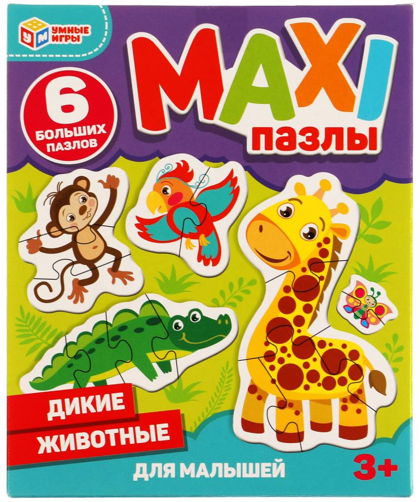 Умные игры Макси-пазлы «Дикие животные»качество картон В данный момент этот товар отсутствует в продаже. Возможно, у нас найдется аналогичный или похожий товар здесь. Макси-пазлы для малышей «Дикие животные» ТМ «Умные игры» — отличная развивающая игра для самых маленьких. |